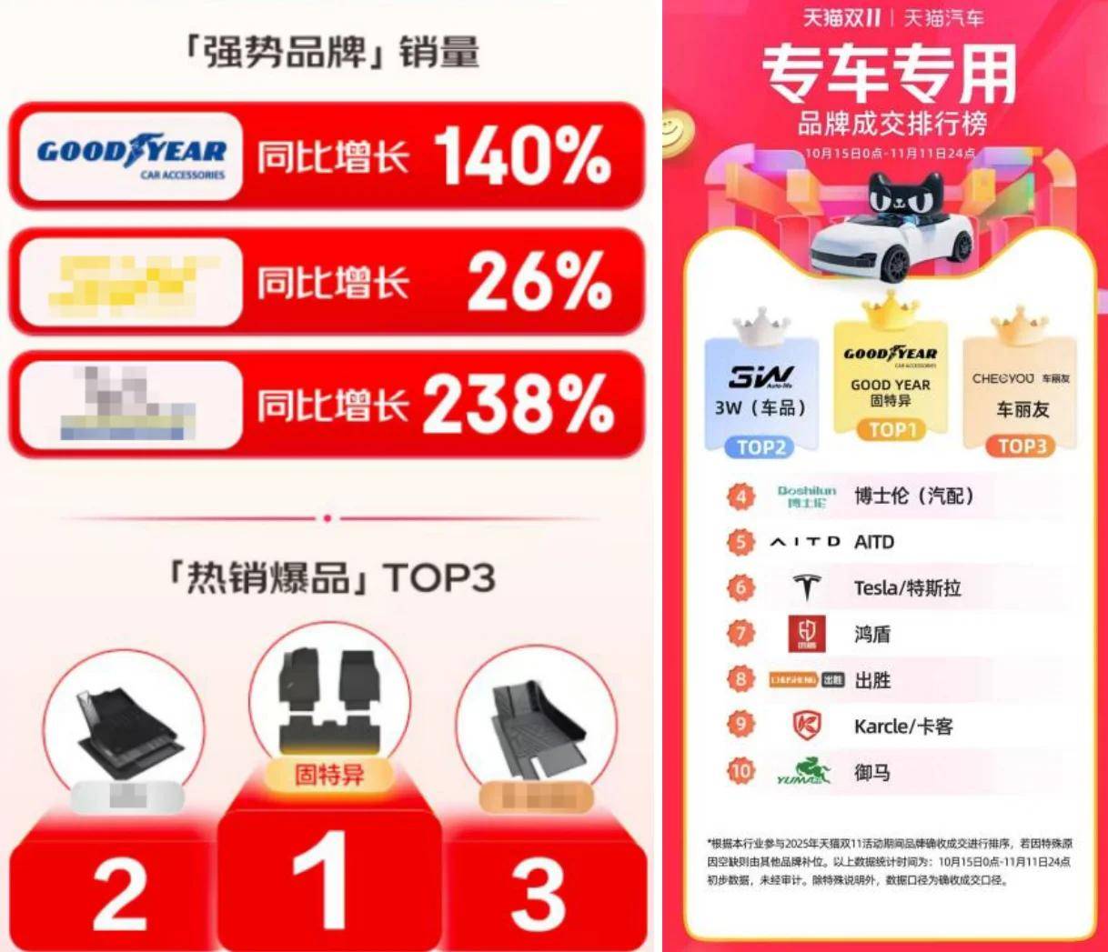 2025年双11购物节落下帷幕,轿车用品赛道竞赛益发剧烈,而固特异轿车用品再次以硬核数据证明其商场领头羊:品牌销量同比添加140%,中心爆品全TPE脚垫稳居京东类目TOP1,天猫专车专用脚垫品类斩获品牌成交榜TOP1,成为当之无愧的双冠王。